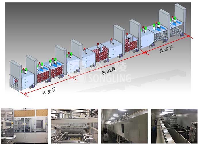 隧道式全自動真空烘烤線是根據客戶現有生產和工藝需要,專門開發的一款電池注液前烘烤的自動真空隧道式流水線;如果更換相關工裝夾具,同時也可以進行極卷的烘烤和電芯規格烘烤。