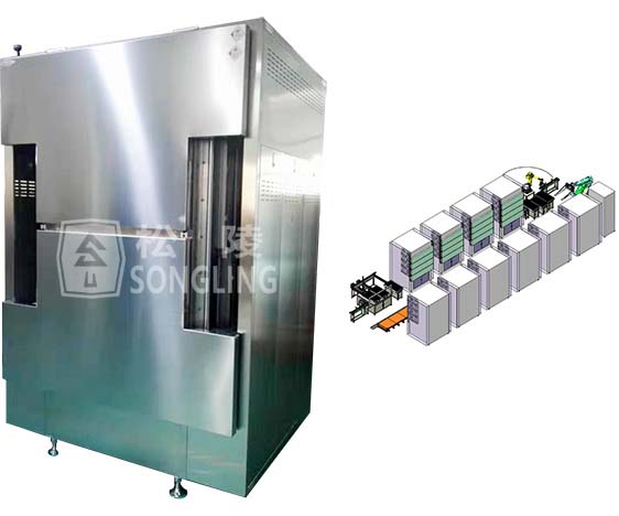 全自動堆垛式真空烘烤系統(tǒng)主要功能是實現(xiàn)電池的上、下料,干燥,冷卻全程自動化生產(chǎn)。該設備具備工藝流程自動控制,歷史數(shù)據(jù)查詢導出,關(guān)鍵參數(shù)實時顯示、問題報警及原因追溯、安全保護等功能。整套設備采用柔性化設計,可兼容多個型號產(chǎn)品,能夠?qū)崿F(xiàn)快速換線。